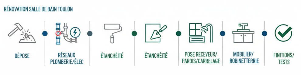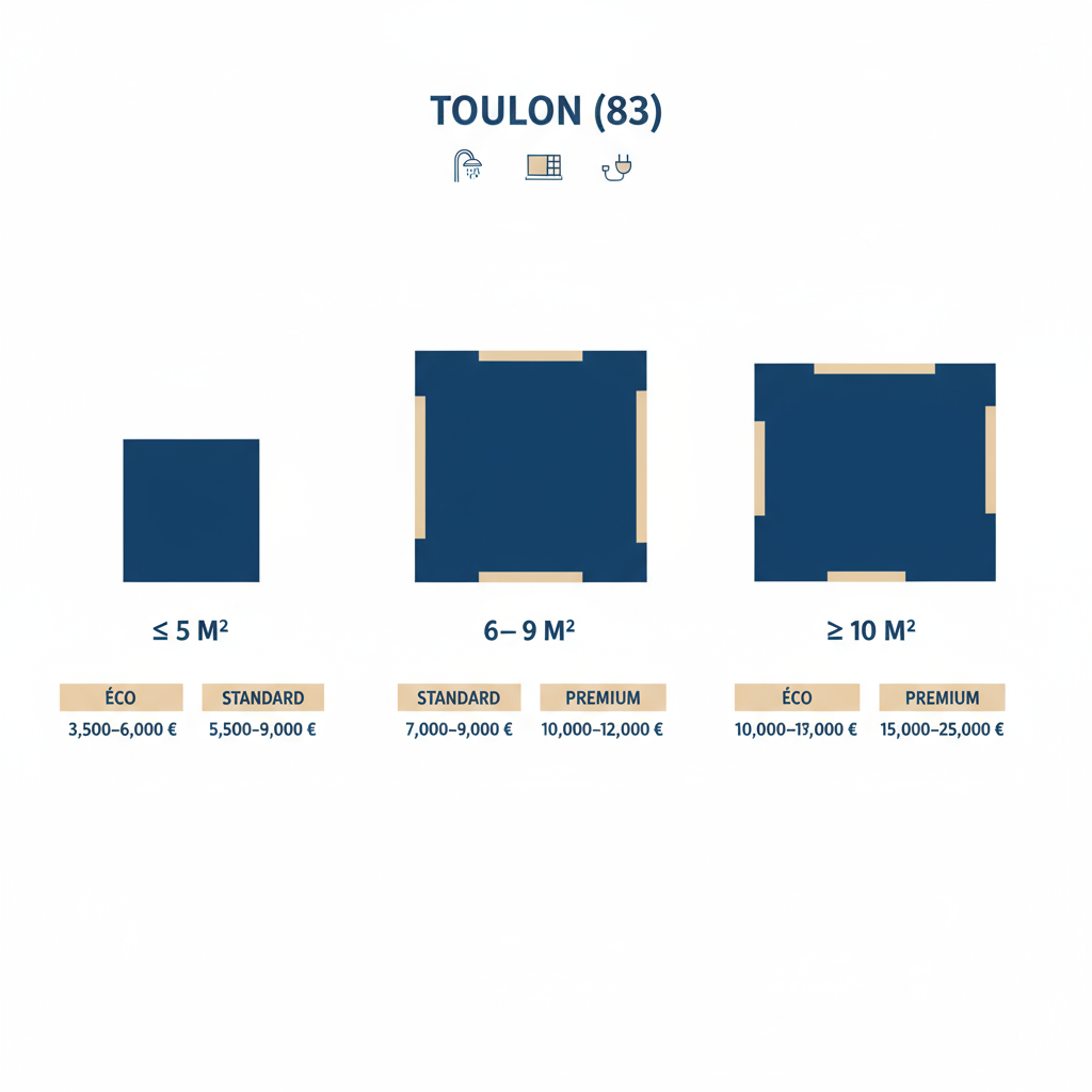 Objectif : vous donner des repères de prix clairs et locaux (Toulon, Var, PACA), des tableaux faciles à lire et une checklist de devis pour rénover sereinement votre salle de bain.